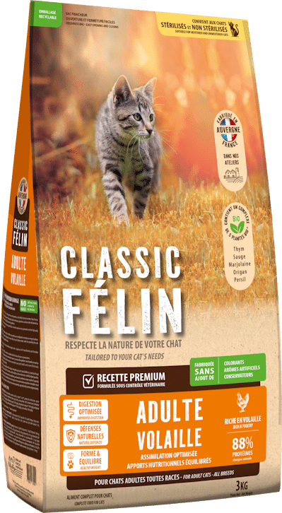 Si vous donnez cet aliment pour la première fois à votre chat, effectuez pendant quelques jours une transition progressive avec l’ancien aliment, afin qu’il puisse s’adapter naturellement à ce nouveau régime alimentaire.