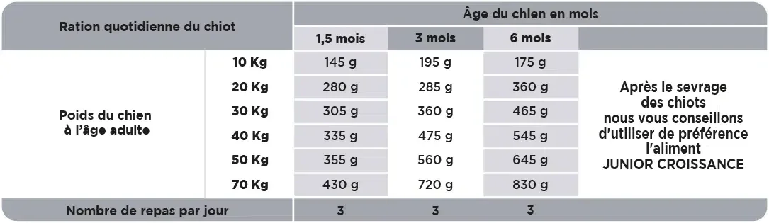 Sevrage des chiots et jeunes chiens de moyennes et grandes races (2 à 4 mois environ).