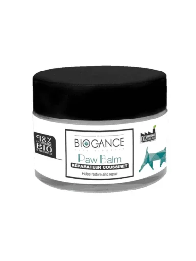 Composé essentiellement de beurre de karité BIO, d’huile de coco BIO, et de cire d’abeille, le baume “Paw Balm” BIOGANCE hydrate, protège, assouplit et répare les coussinets et la truffe de votre animal, qui peuvent de temps à autre, être secs, fendillés ou abimés.Il est facile à appliquer, pénètre rapidement et son odeur discrète est ultra agréable ! Il convient de l’utiliser pour nourrir, particulièrement en cas de fragilité de la truffe ou des coussinets, en préparation des vacances, lors des périodes d’activité intense, mais aussi en période de froid, pour reformer un coussinet solide après une blessure, etc.LE + BIOGANCE :