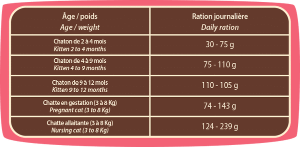 Croissance et vitalité : Une croissance harmonieuse favorisée par un profil nutritionnel adapté aux besoins des chatons. Des apports énergétiques qui contribuent à leur bon développement musculaire et squelettique, grâce à un niveau élevé en protéines et un taux équilibré en minéraux.